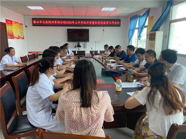 在新冠肺炎疫情防控工作持續(xù)開展的同時,為切實貫徹落實《醫(yī)療質(zhì)量管理辦法》,強化醫(yī)療機構(gòu)行業(yè)作風(fēng)建設(shè),進一步加強緊密型醫(yī)共體成員單位醫(yī)療質(zhì)量管理,規(guī)范醫(yī)療服務(wù)行為,保障醫(yī)療安全,不斷完善醫(yī)療質(zhì)量管理及行業(yè)作風(fēng)建設(shè)長效工作機制,提升成員單位醫(yī)療質(zhì)量管理水平和就醫(yī)滿意度,以及落實對各成員單位醫(yī)保政策執(zhí)行情況的監(jiān)管,2020年7月1日-7月4日市立醫(yī)院汪軍副院長帶隊,由質(zhì)控科、醫(yī)教科、護理部、醫(yī)???、藥劑科、院感辦、醫(yī)共體辦公室等科室負責(zé)人組成的聯(lián)合督查組開展了緊密型醫(yī)共體成員單位2020年上半年醫(yī)療質(zhì)量及醫(yī)保監(jiān)管督查。