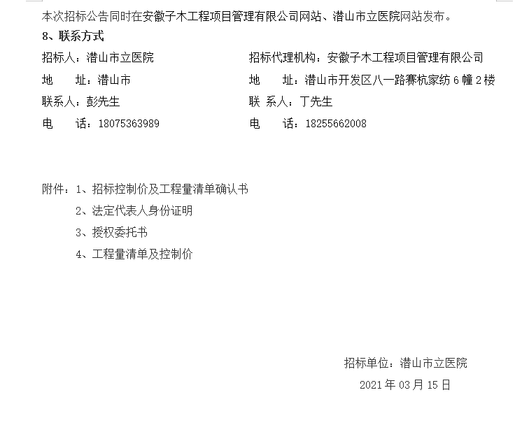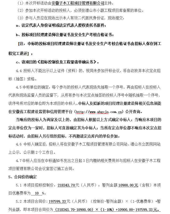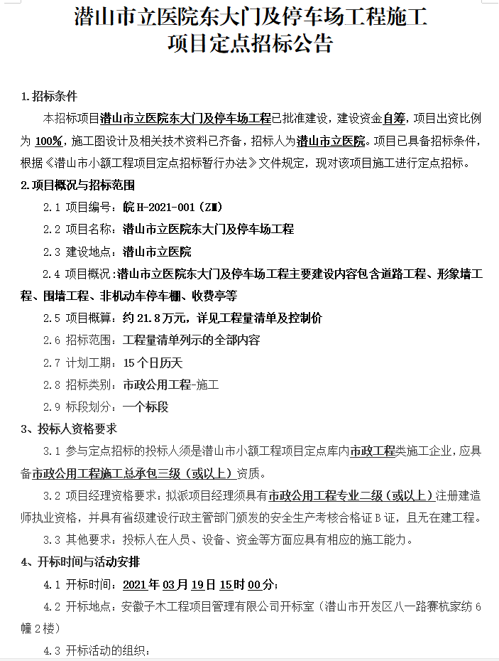 潛山市立醫(yī)院東大門及停車場工程施工項目定點招標(biāo)公告