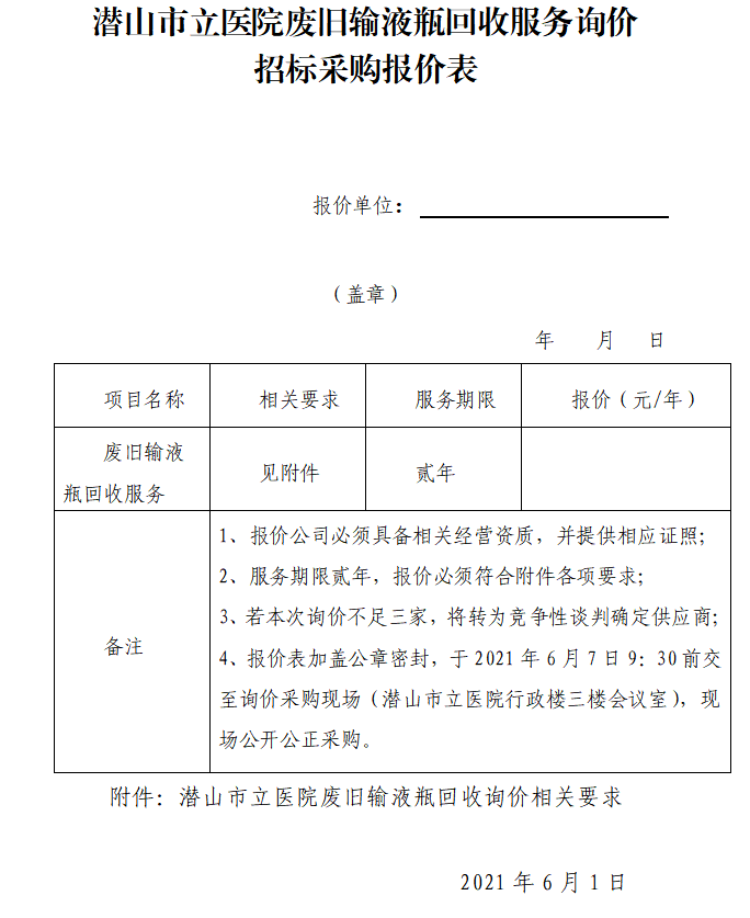 2、回收地點(diǎn):潛山市立醫(yī)院
