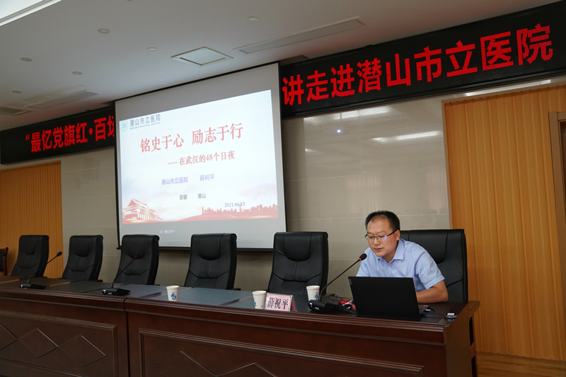 為進(jìn)一步推進(jìn)黨史學(xué)習(xí)教育,大力弘揚(yáng)偉大的抗疫精神,6月15日,“最憶黨旗紅·百場紅色安慶大家講”系列大宣講活動(dòng)走進(jìn)潛山市立醫(yī)院。安徽省第三批支援湖北醫(yī)療隊(duì)成員、潛山市立醫(yī)院副院長薛祝平作《銘史于心、勵(lì)志于行》宣講報(bào)告。