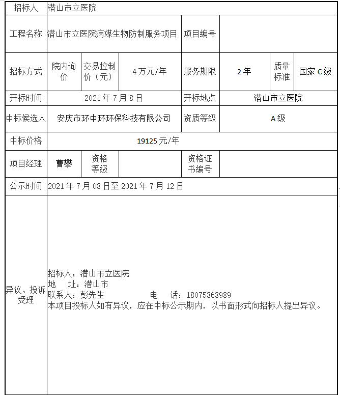 (小額)潛山市立醫(yī)院病媒生物防制服務(wù)