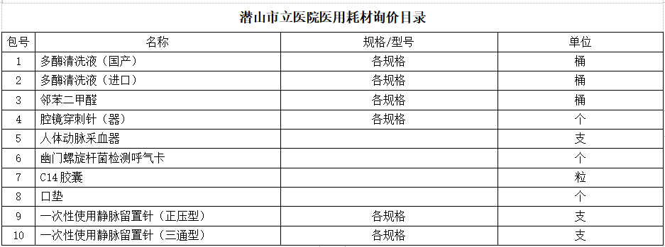 附件:潛山市立醫(yī)院醫(yī)用耗材詢價目錄