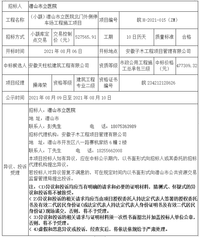 (小額)潛山市立醫(yī)院北門外側(cè)停車場工程施工項目