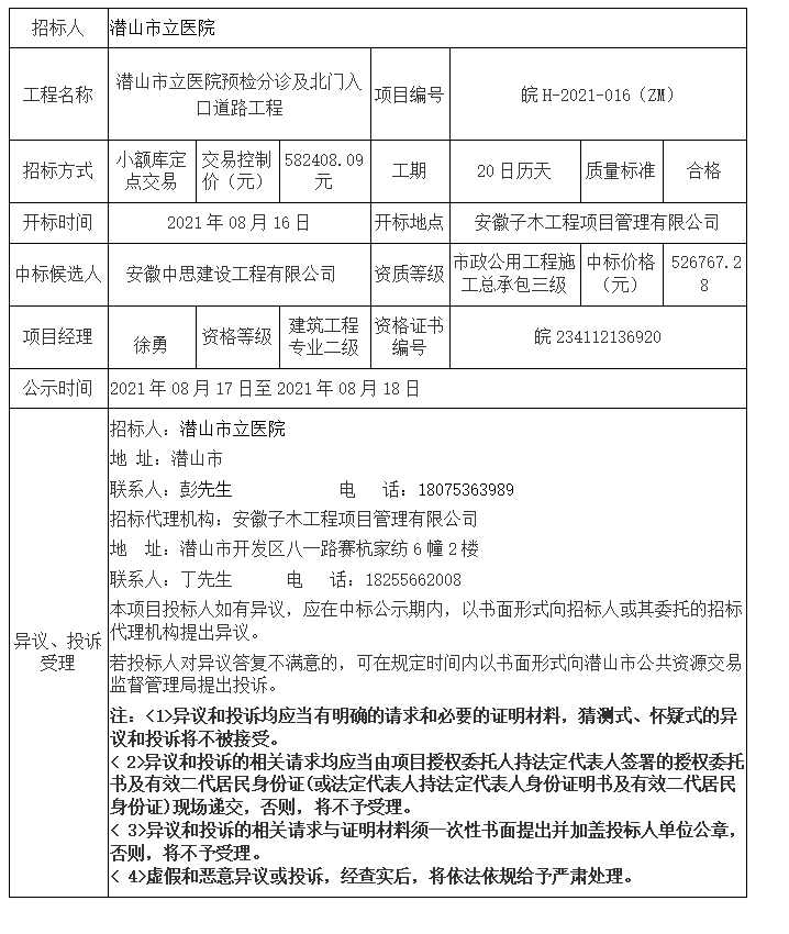 (小額)潛山市立醫(yī)院預(yù)檢分診及北門(mén)入口道路工程施工項(xiàng)目