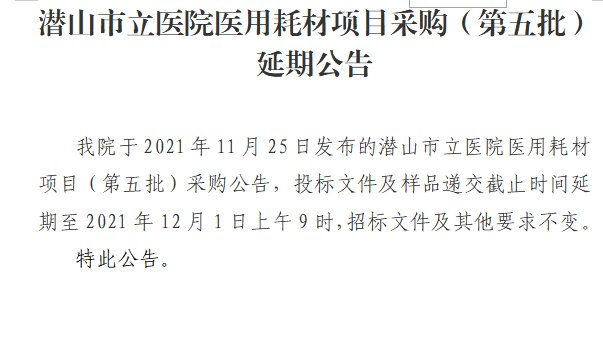 潛山市立醫(yī)院醫(yī)用耗材項(xiàng)目采購(gòu)(第五批) 延期公告