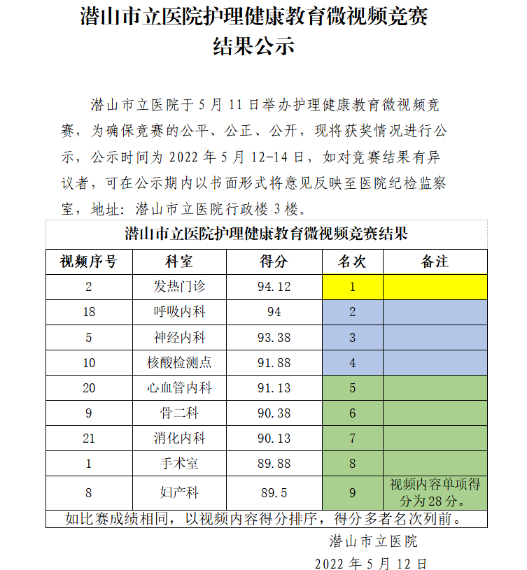 潛山市立醫(yī)院護(hù)理健康教育微視頻競賽結(jié)果公示