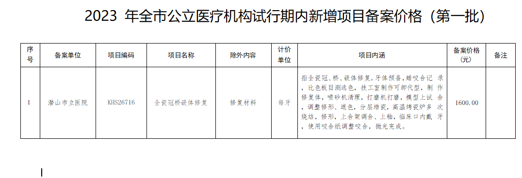 2023 年全市公立醫(yī)療機(jī)構(gòu)試行期內(nèi)新增項(xiàng)目備案價(jià)格(第一批)