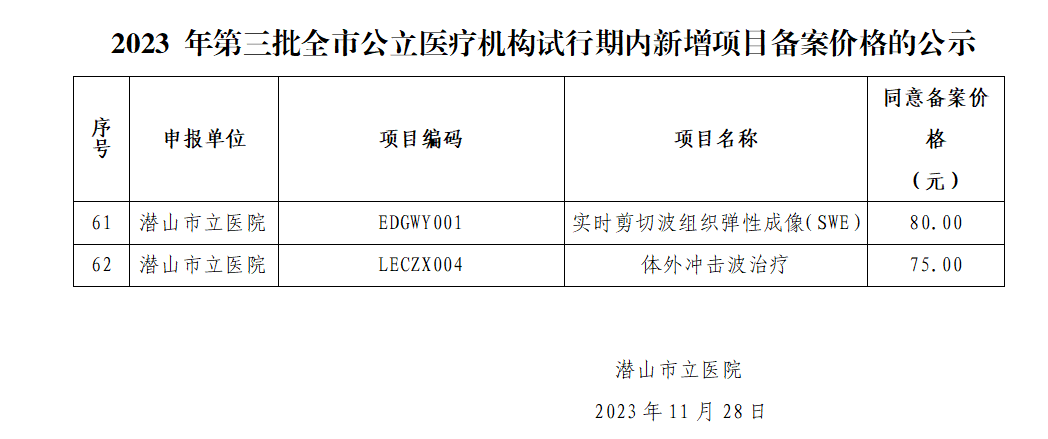 2023 年第三批全市公立醫(yī)療機(jī)構(gòu)試行期內(nèi)新增項目備案價格的公示