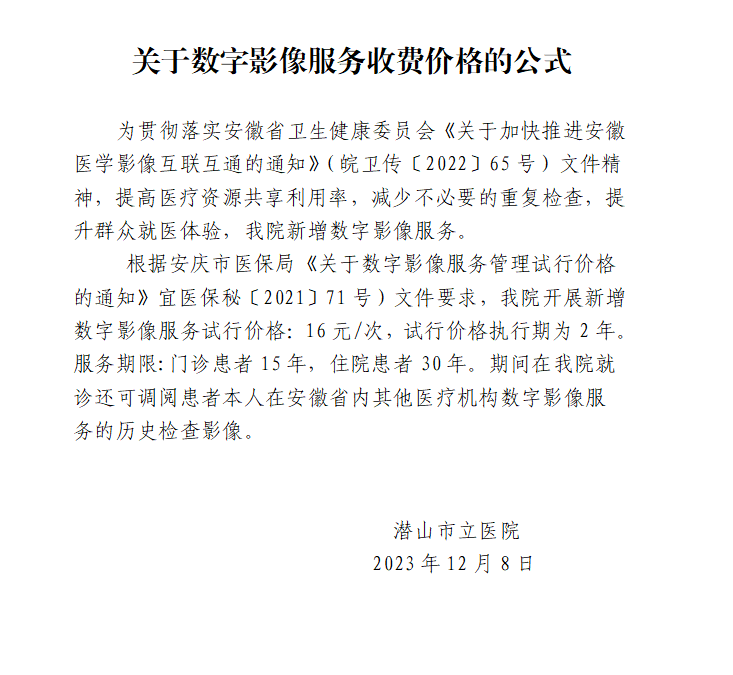 關(guān)于數(shù)字影像服務(wù)收費價格的公示