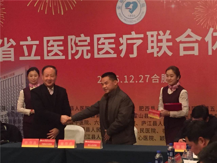 12月27日下午,安徽省立醫(yī)院醫(yī)療聯(lián)合體合作協(xié)議簽約儀式在合肥舉行。我院華德法院長出席簽約儀式,并與安徽省立醫(yī)院院長許戈良共同簽訂合作協(xié)議。