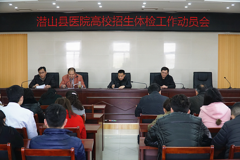 今年高校招生體檢工作定于3月16日至29日進行。3月7日下午,潛山縣高校招生體檢工作會議在縣醫(yī)院影像樓會議室召開,縣招生辦主任儲成杰、醫(yī)院領(lǐng)導(dǎo)班子和高校招生體檢工作人員40多人參加了會議。