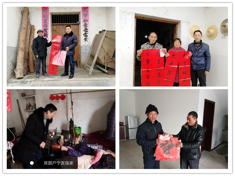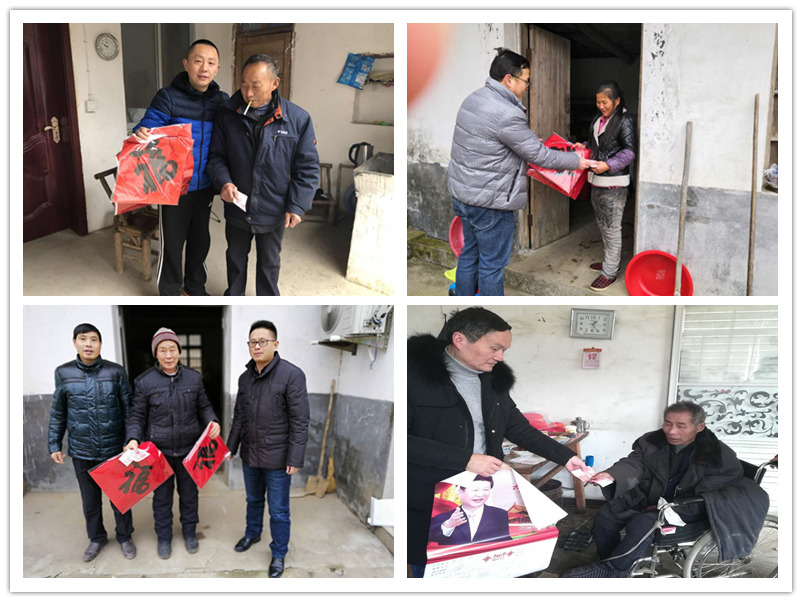 春節(jié)將至,為進一步落實好精準扶貧工作,確保貧困戶能過上一個歡樂祥和的春節(jié)。1月19日,潛山市立醫(yī)院組織開展了暖冬愛心行動, 醫(yī)院27名幫扶人帶著年畫、春聯(lián)和慰問金分別到84戶結(jié)對幫扶的貧困戶家中進行走訪慰問,每到一戶幫扶人都與貧困戶噓寒問暖,詳細了解家庭生產(chǎn)、生活情況以及他們的所盼、所思、所需,并反復(fù)叮囑他們有什么困難和問題可以隨時聯(lián)系幫扶人,幫扶人也將竭盡所能為他們解決困難。