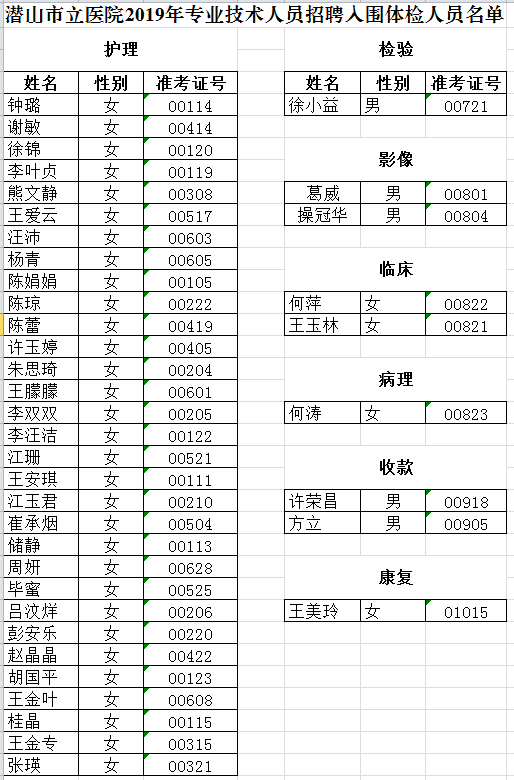 附:潛山市立醫(yī)院2019年專業(yè)技術人員招聘面試成績及總得分
