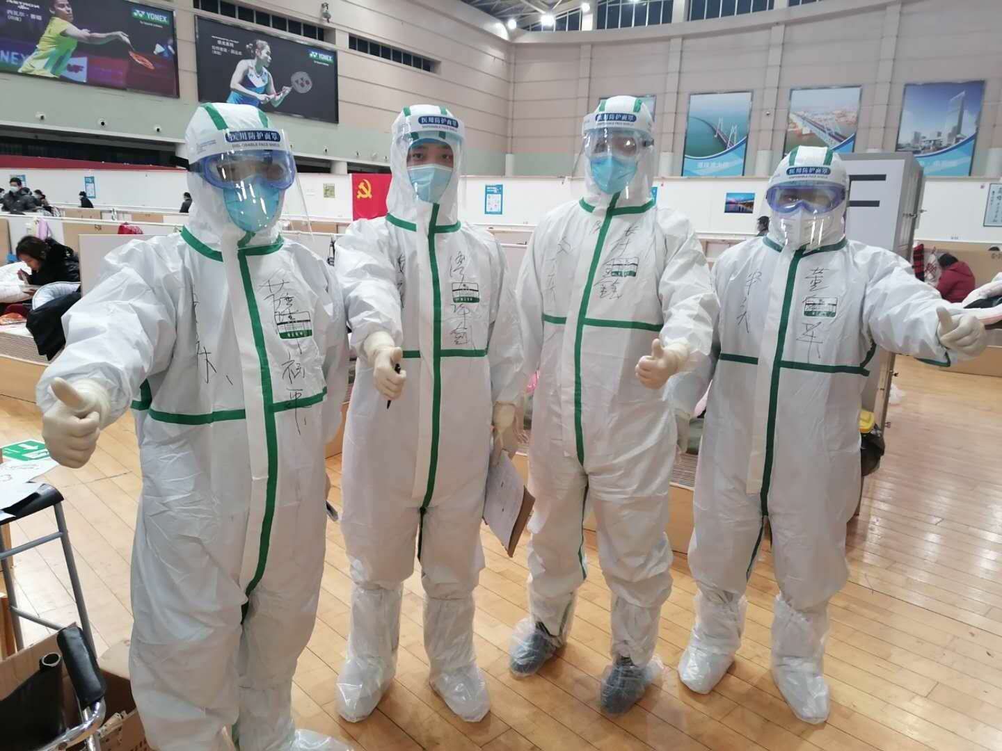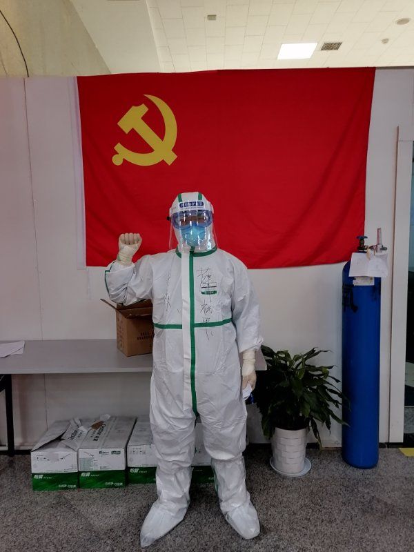 下午一點(diǎn)鐘,班車準(zhǔn)時(shí)停在酒店樓下,到了方艙醫(yī)院,大家趕緊穿隔離衣防護(hù)服。今天安排了兩名醫(yī)生不進(jìn)艙,值外圍班。我們進(jìn)艙前均由他倆檢查一遍,看有否環(huán)節(jié)上的遺漏,在防護(hù)服上寫上每人的姓名等。