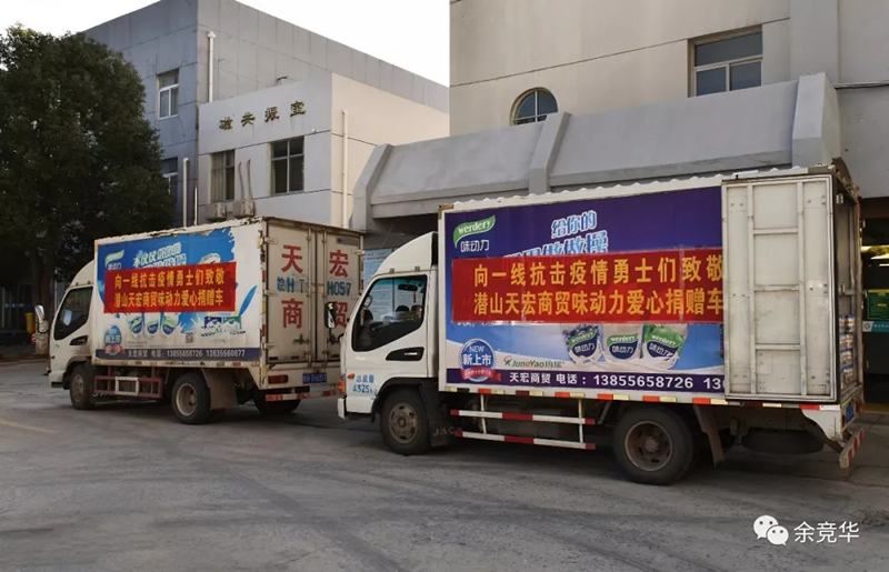連日來(lái),新冠肺炎疫情牽動(dòng)著無(wú)數(shù)人的心,在抗擊疫情的關(guān)鍵時(shí)期,2月18日,上海聯(lián)享公益基金會(huì)通過(guò)潛山市紅十字會(huì)向潛山市立醫(yī)院捐贈(zèng)味動(dòng)力牛奶飲料744件,為奮戰(zhàn)在一線的醫(yī)護(hù)人員送去營(yíng)養(yǎng),助力抗疫。當(dāng)天下午,兩輛貼著“向一線抗擊疫情勇士們致敬”標(biāo)語(yǔ)的貨車載著這份沉甸甸的愛(ài)心駛進(jìn)了潛山市立醫(yī)院。工作人員將這些牛奶飲料送到奮戰(zhàn)在抗疫一線的白衣天使們手中。 文/圖 余競(jìng)?cè)A