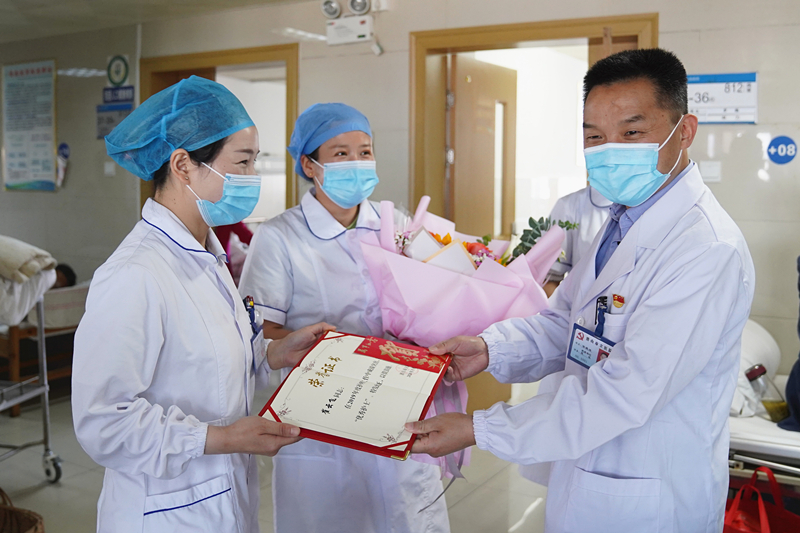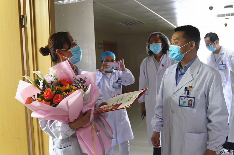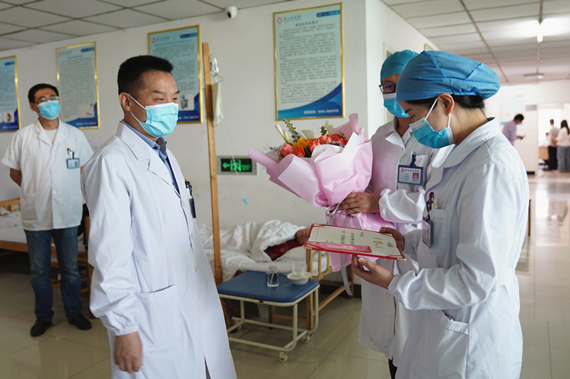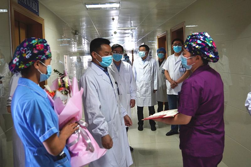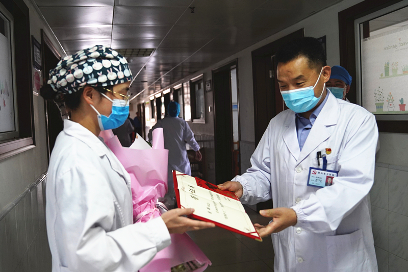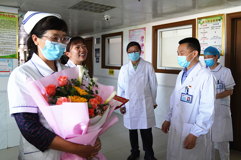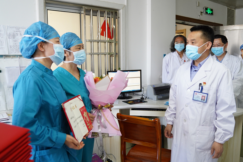 5月12日上午,華院長帶領(lǐng)醫(yī)院領(lǐng)導班子深入臨床一線,對全院26個護理單元進行了慰問,并向全院護士們致以誠摯的節(jié)日祝福,對全院護理人員在新冠肺炎疫情防控中的突出表現(xiàn)給予高度的肯定。
